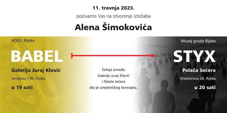 Otvorenje izložbe Styx u Muzeju grada Rijeke-Palača šećera, Krešimirova 28, utorak, 11. travnja 2023.g., u 20 sati.