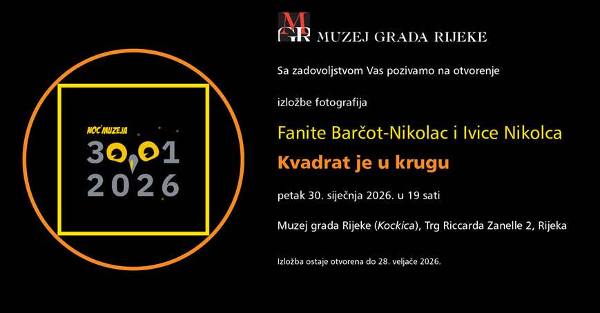 Utorak, 20. siječnja 2026. u 19 sati, Muzej grada Rijeke, Trg Riccarda Zanelle 2, Rijeka.