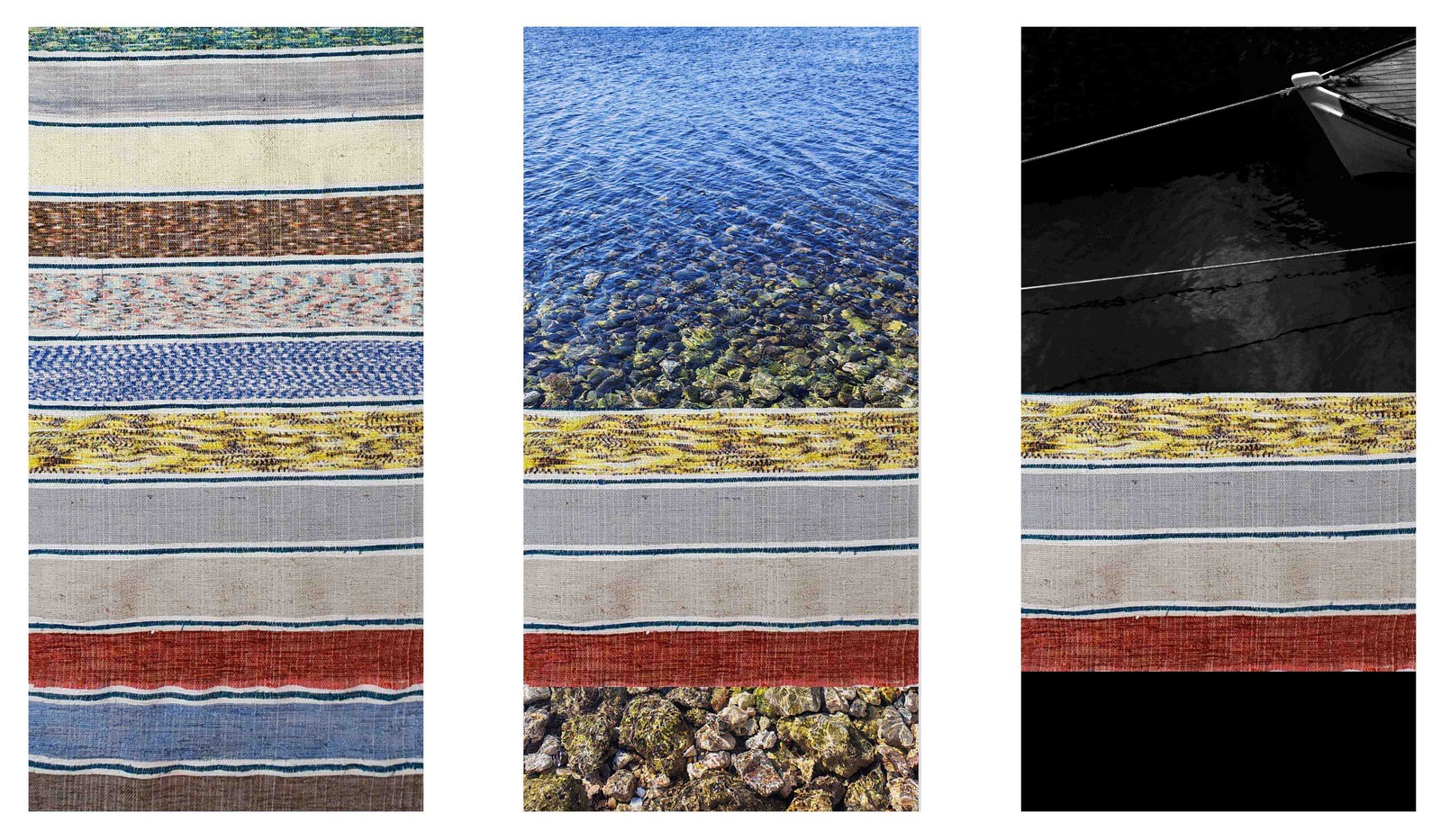 Drvo, sa svojim godovima, pukotinama i tragovima upotrebe, postaje svojevrsni arhiv vremena, unutar njega uspostavljen je novi red, ritam i kompozicijska jasnoća. Okvir je spona između stvarnosti i umjetničkog prostora. Iako polazi od skromnih, svakodnevnih elemenata, on ostvaruje izrazito čvrstu formalnu i umjetničku koherentnost. Njegov postupak ne oslanja se na spektakularnost materijala, nego na discipliniranu organizaciju odnosa unutar kompozicije. Upravo u toj suzdržanosti očituje se snaga rada: redukcijom izražajnih sredstava postiže se visoka razina koncentracije, a svaki element dobiva određenu funkciju u cjelini. Kombinacijom grafičkih i crtačkih postupaka dodatno se proširuje medijski okvir rada. Linija ne funkcionira samo kao obris ili deskriptivni element, već kao nositelj strukture, dok grafička organizacija plohe unosi ritmizaciju i jasnoću. Slika se širi u prostor, iznesena poput objekta, a cjelokupni izložbeni prostor postaje integralni dio rada. Zakonitosti pojedinačnih kompozicija šire se, a posjetitelji se u takvom okruženju ne nalaze pred radom kao zasebnim djelom, već su dio konceptualno smišljene cjeline koja ga uključuje. Radnju smiruju krajolici širokih livada i kolaža morskih površina, taj ženski segment povijesti povezan je s majkom, s „krparama“ i maramama, toplinom tkanja i slikarskom snagom boja pružajući sklad, poetičnost i ravnotežu.