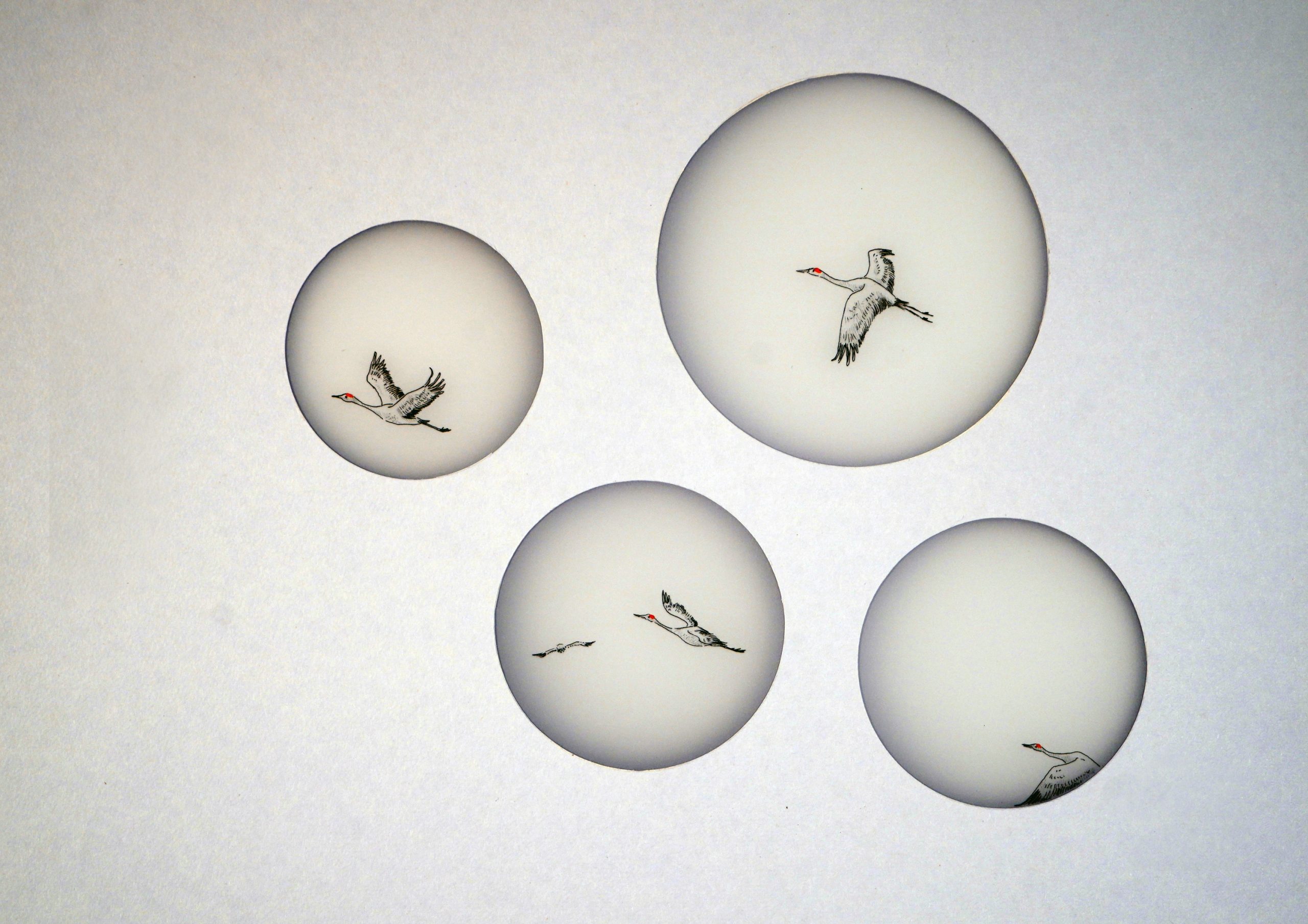 Novi ciklus radova Carry Lee Hent potvrđuje sve one kvalitete koje od početka pratimo u njenom stvaralaštvu. Metafora pojavnosti te specifična i atraktivna autentičnost stila kreiraju novu stvarnost, spajajući ptice i nas. Bjelinu papira prožimaju niti, vodeći od slike do slike, a nestalni i svjetlosni prizori donose mirnoću i tišinu u kojoj zaronjeni možemo ponekad čuti lepet krila i osjetiti zov daljine. Radovi i nadalje nose idejne komponente umjetnosti Dalekog Istoka, u čijem svjetonazoru umjetnica ističe elemente minimalizma, kao i traženje estetike jedinstva misli i osjećaja. Ipak, dijelom se od njega i odmiče, zbog čega djela odišu originalnim