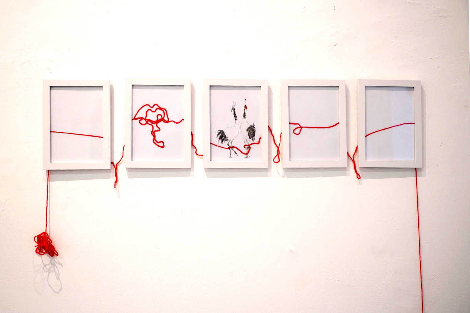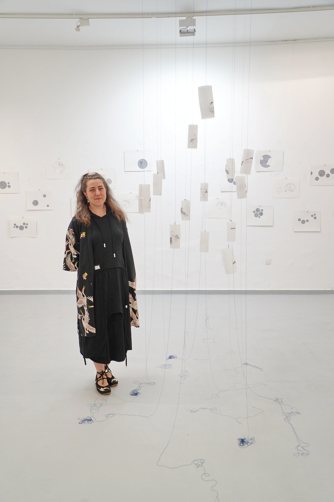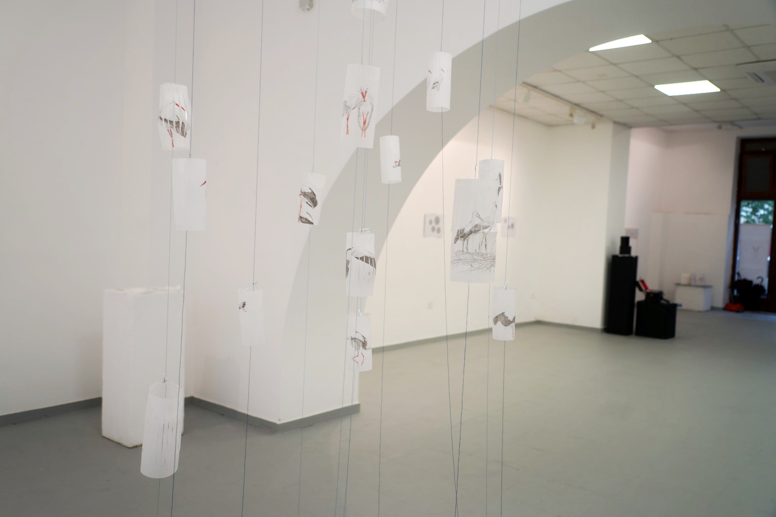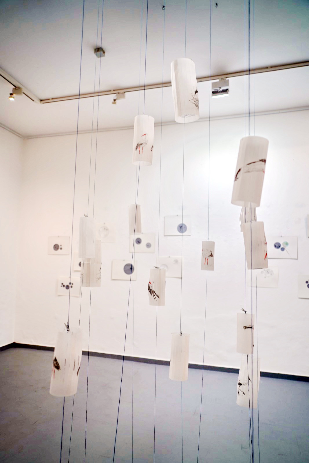 sugestivnim teatralnim formama i pomacima gledišta autorica gradi svoj umjetnički svijet, skladan i zavodljiv, prepoznatljiv po preciznosti izvedbe i vizualnoj čistoći. Domišljati i slojeviti uradci nose svojstvenost i elementarnost skica, međutim pažljivijim promatranjem mi otkrivamo finoću i odmjerenost linija te smislenost razrađene ideje. Razasuti poput oblaka plavetnilom neba oblici se prostiru galerijom, spojeni u svojem konceptu dočarane priče o povezanosti atributa, ali s izraženom težnjom prema slobodi i letu. Prikazani motivi obrađeni su vještinom izabranih i domišljatih detalja crteža ždralova i roda, gracioznih ptica koje u sebi nose značenje, upućuju na duhovnost čovjeka iskazujući njegovu povezanost s prirodom.